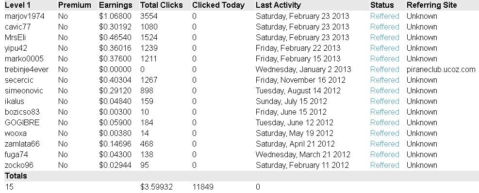 | defe vidim te kao cavic77 Added (2013-01-07, 11:17 AM) --------------------------------------------- trenutno stanje Balance:$1.23707 Added (2013-02-23, 1:14 PM) --------------------------------------------- molim vas ekipo da budete malo vise aktivni danas da mogu danas oko 23:00 zatrazit isplatu Added (2013-02-24, 10:55 AM) ---------------------------------------------